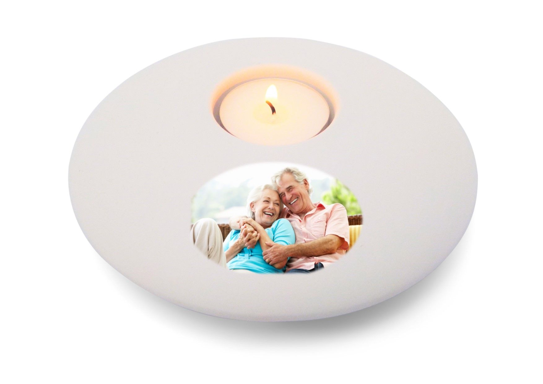 - Mini urn-schaal Ø 8 cm (hoogte 3 cm) voor een kleine hoeveelheid as (zonder waxinelichtje)